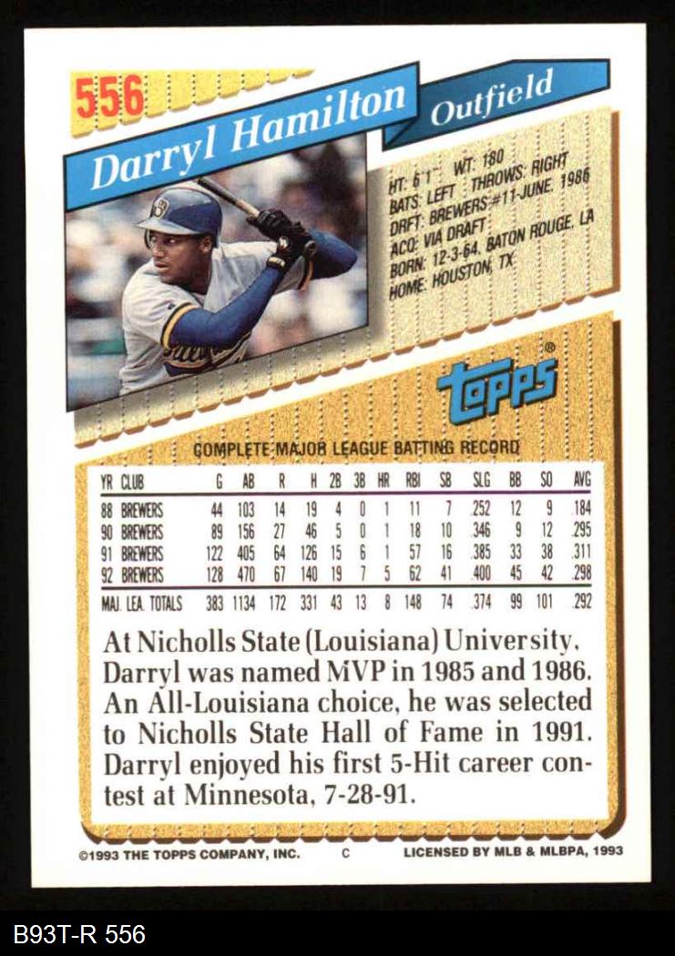 1993 Topps #556 Darryl Hamilton 8 - NM/MT