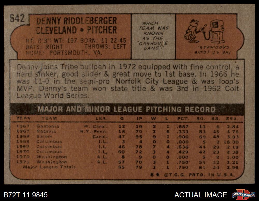 1972 Topps #642 Dennis Riddleberger 2 - GOOD