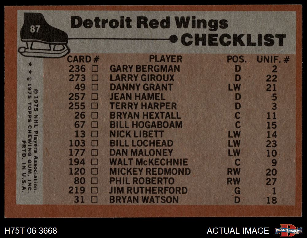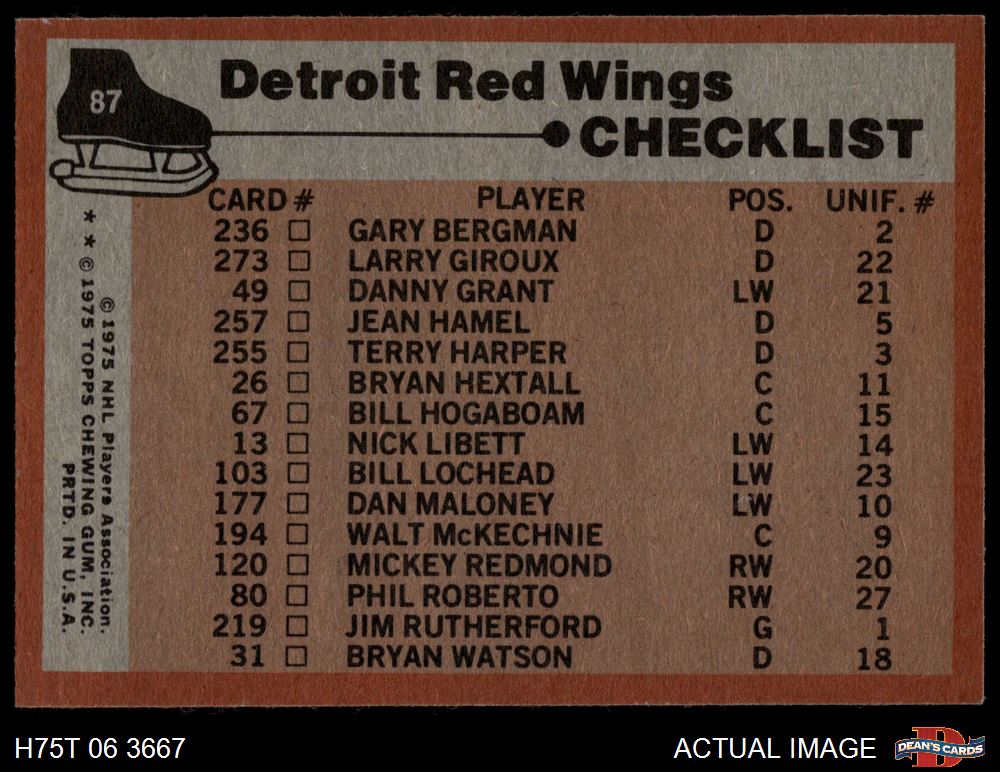 1975-76 Topps Hockey Cards (3,193 available)1975 Topps Red Wings (270 available)