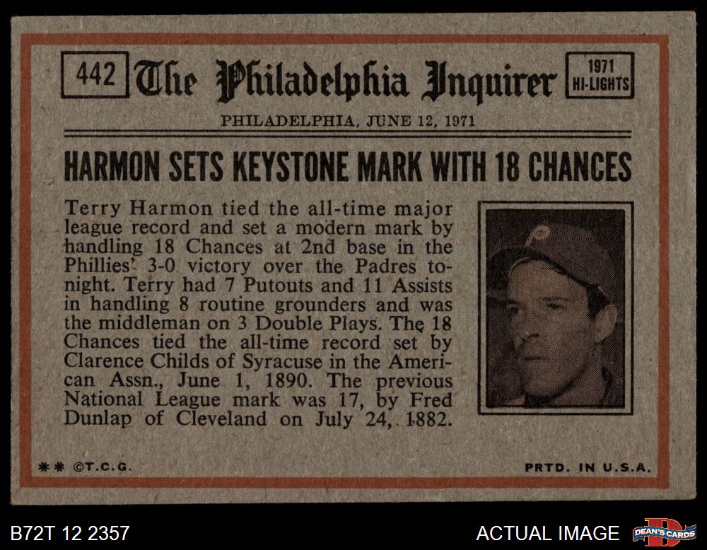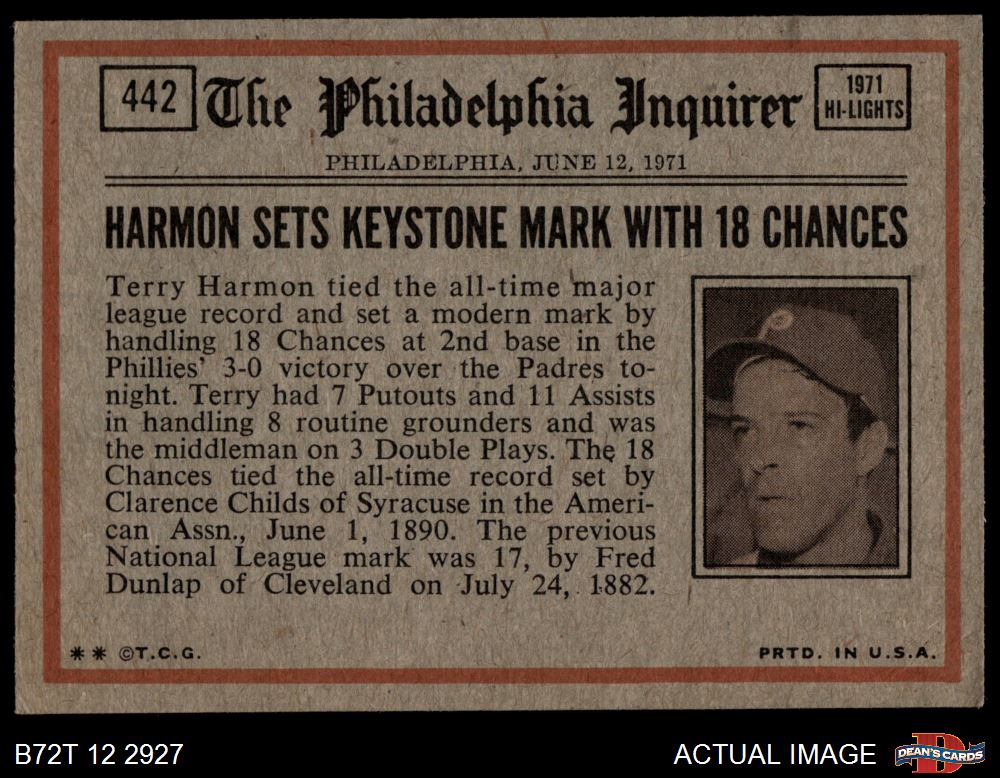 1972 Topps #442 - Thurman Munson In Action 3 - VG