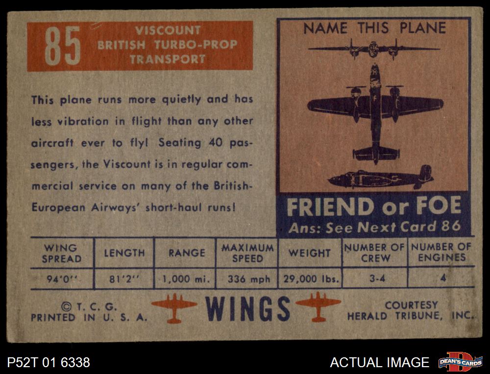 1952 Topps Wings #85 Viscount