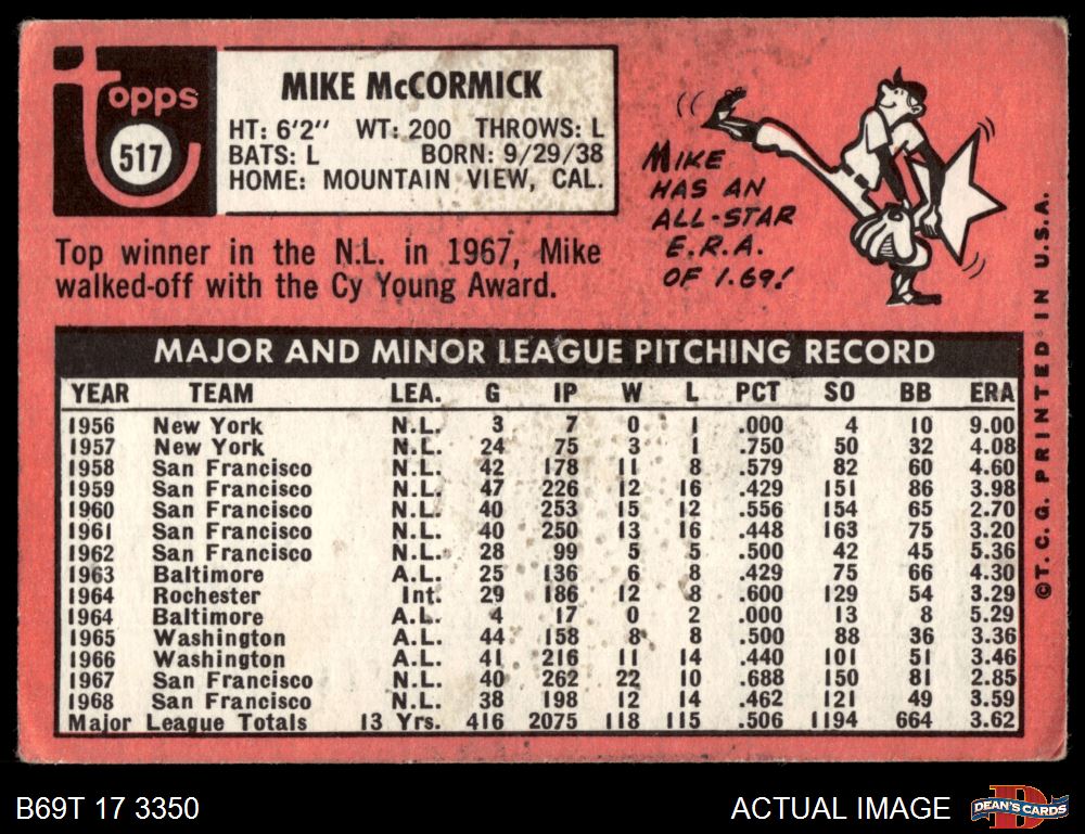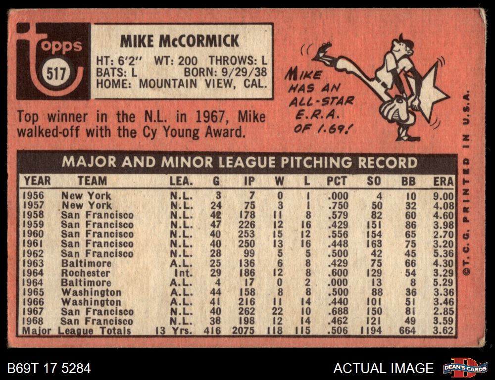 1969 Topps #517 Mike McCormick 2 - GOOD