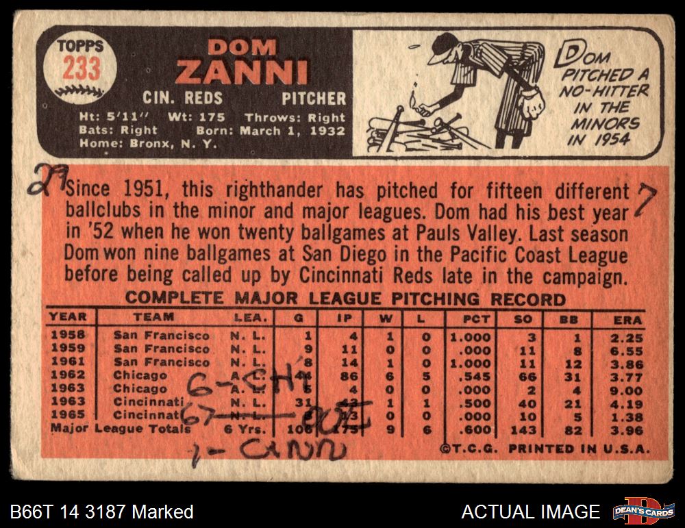 1966 Topps #233 Dom Zanni 1.5 - FAIR
