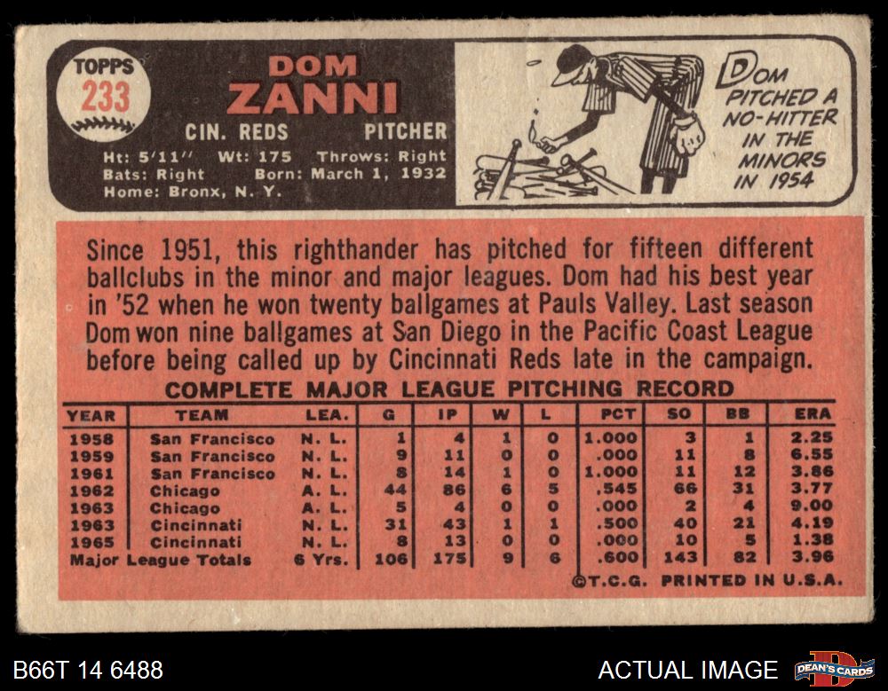 1966 Topps #233 Dom Zanni Front Thumbnail
