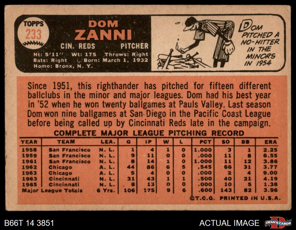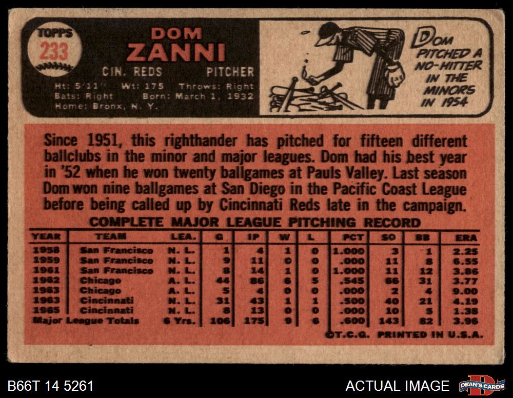 1966 Topps #233 Dom Zanni 2 - GOOD