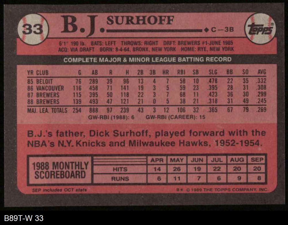 1989 Topps #33 B.J. Surhoff