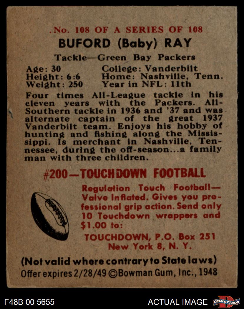 1948 Bowman #108 Buford Ray 4 - VG/EX