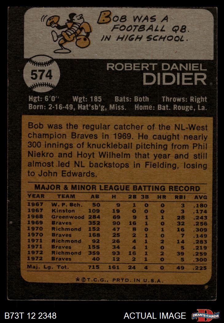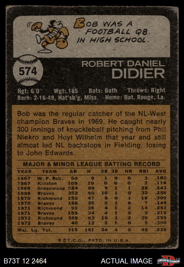 1973 Topps #574 Bob Didier 1 - POOR