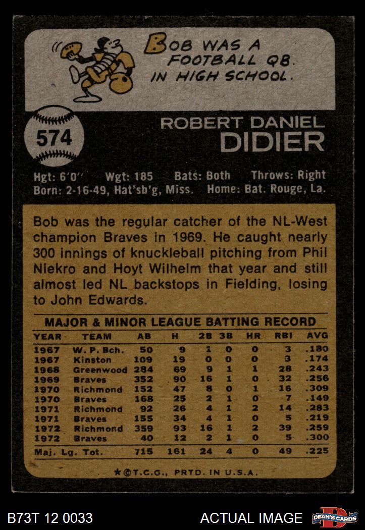 1973 Topps #574 Bob Didier 5 - EX