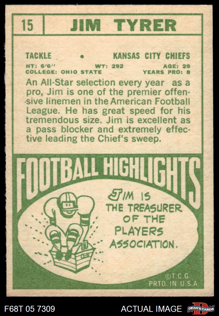 1968 Topps #15 Jim Tyrer 5 - EX
