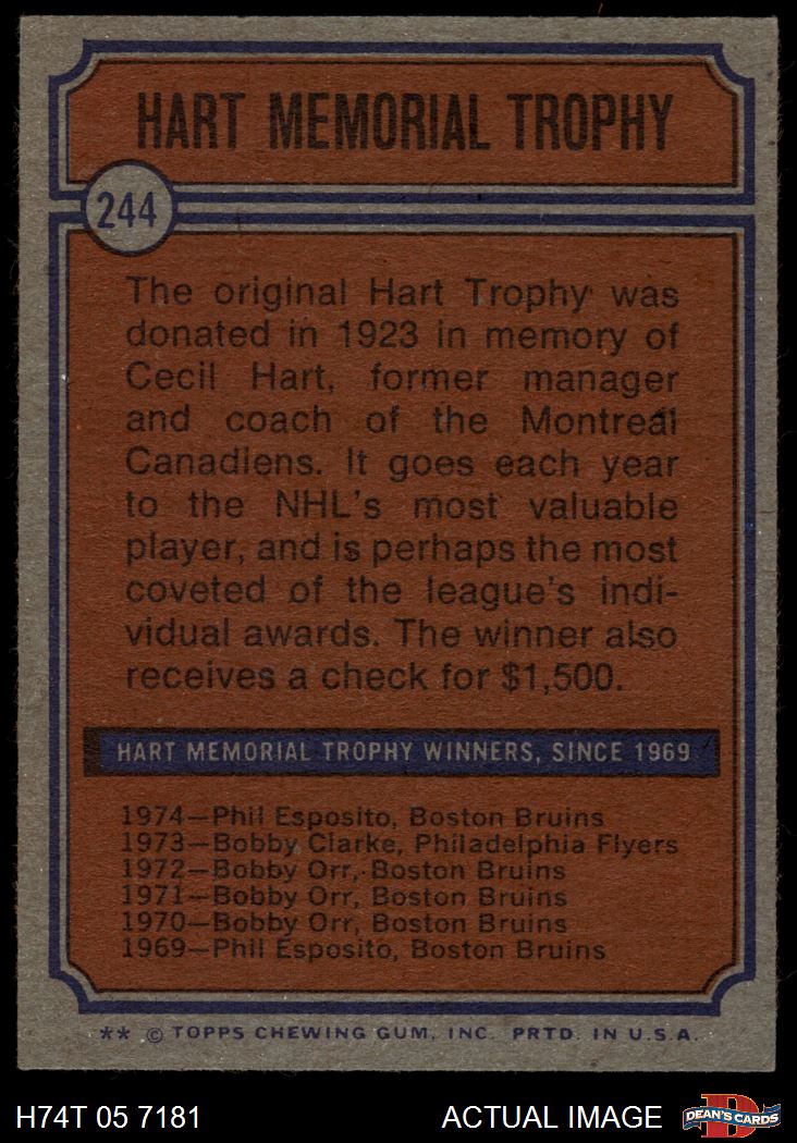 1974 Topps #244 Hart Trophy