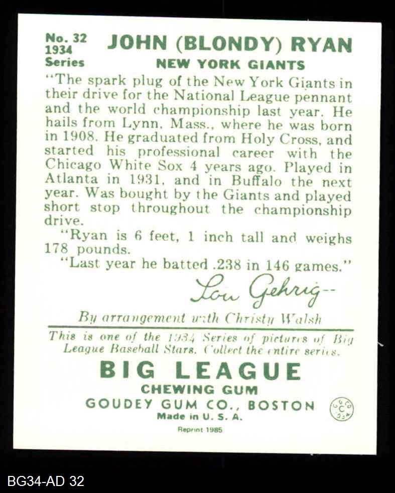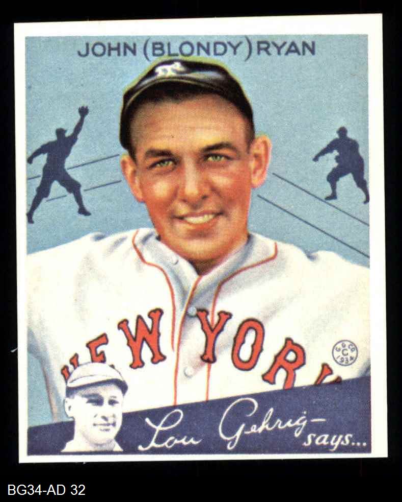 1934 Goudey Reprint #32 Blondy Ryan 8 - NM/MT