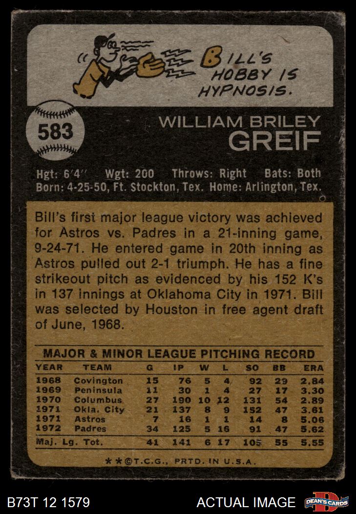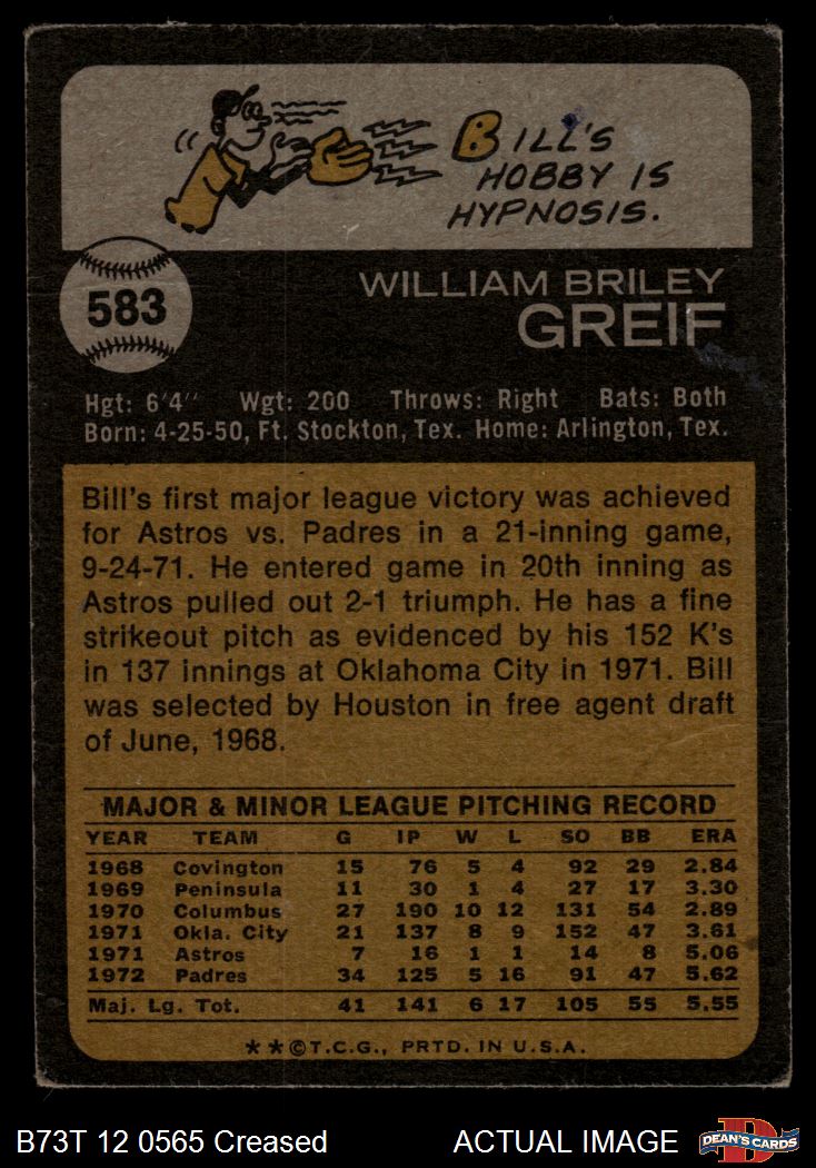 1973 Topps #583 Bill Greif 1.5 - FAIR
