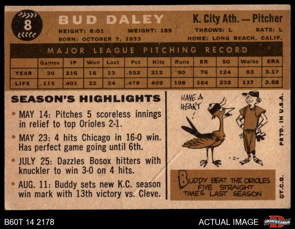 1960 Topps #8 Bud Daley 1.5 - FAIR