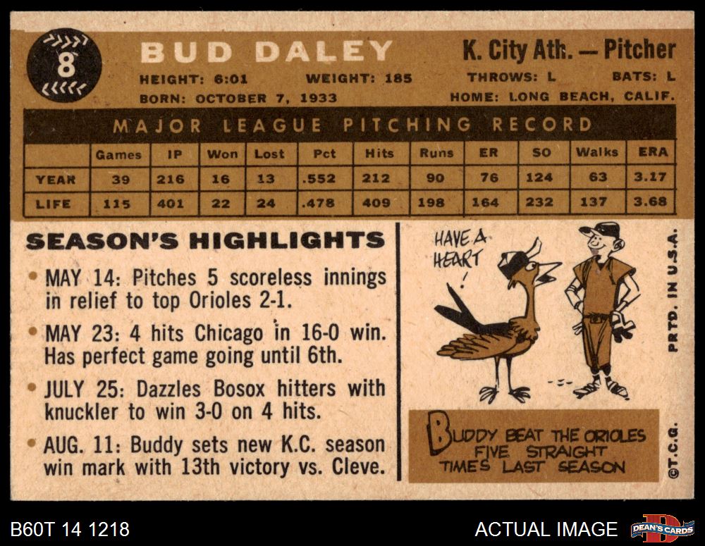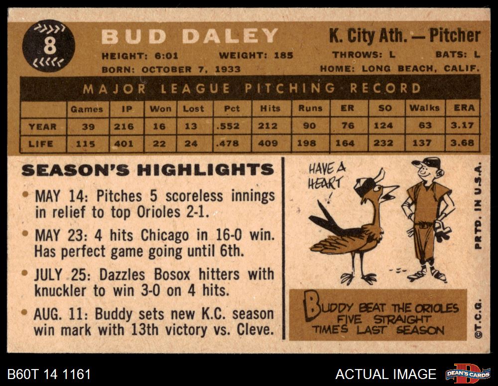 1960 Topps #8 Bud Daley 5.5 - EX+