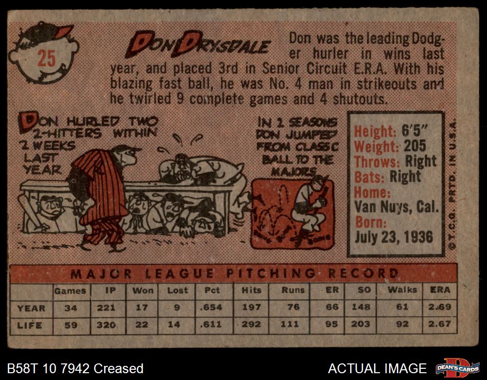 1958 Topps #25 Don Drysdale 2 - GOOD