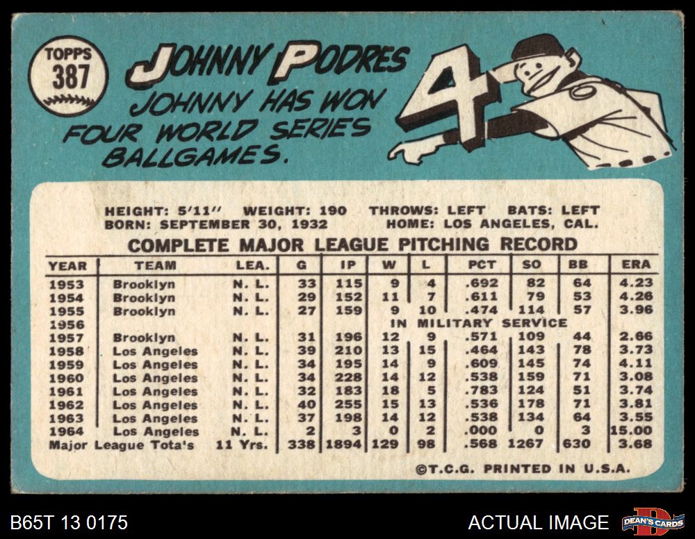 1965 Topps #387 Johnny Podres 3.5 - VG+
