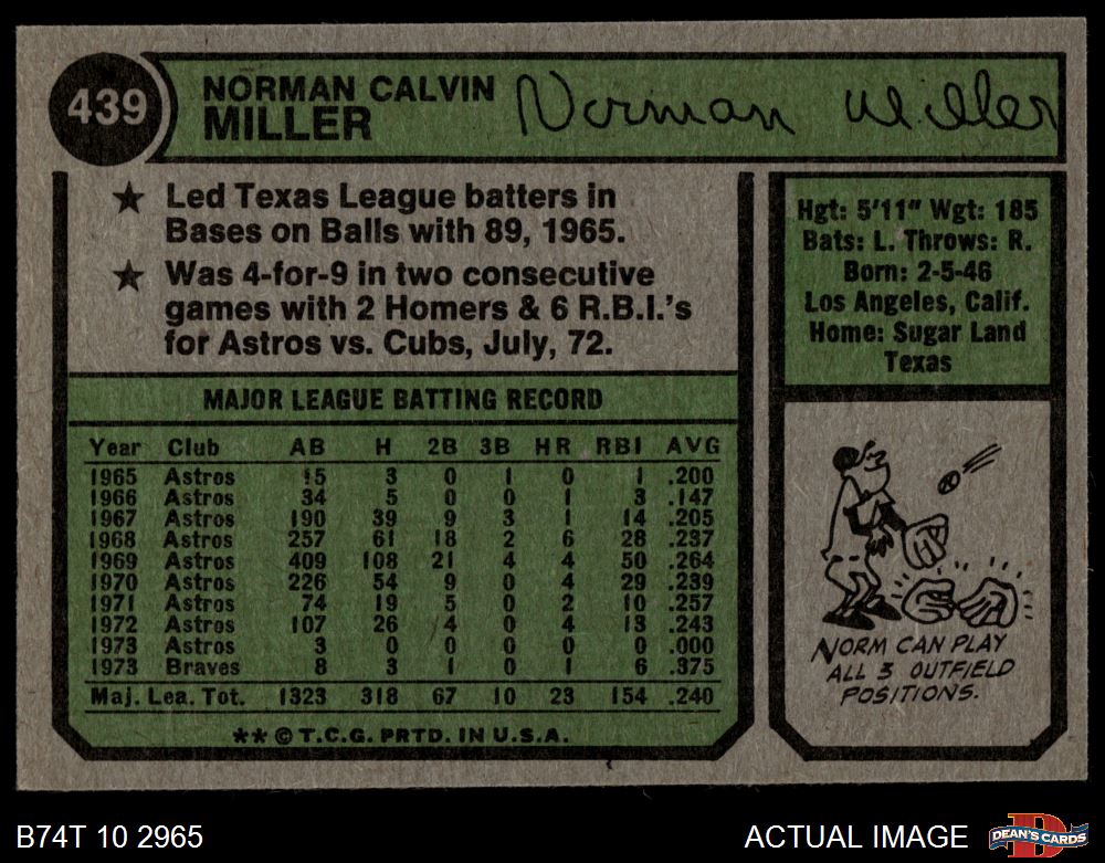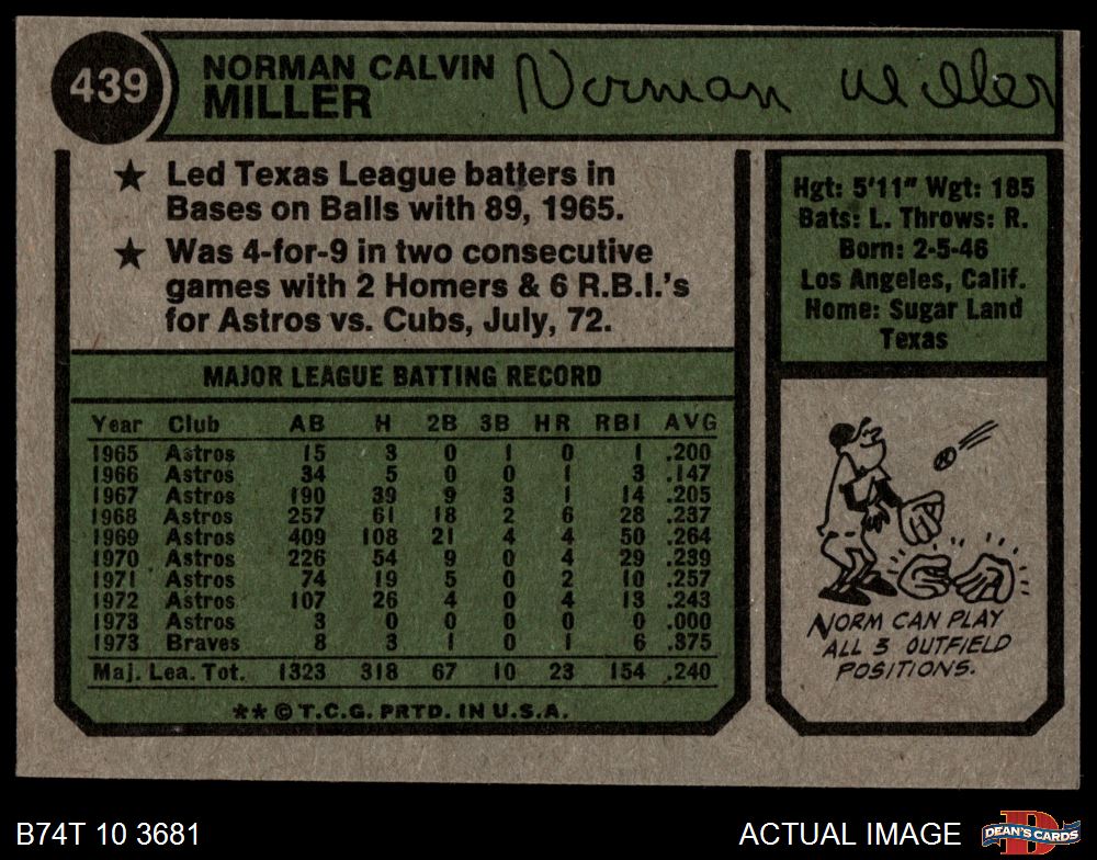 1974 Topps #439 Norm Miller