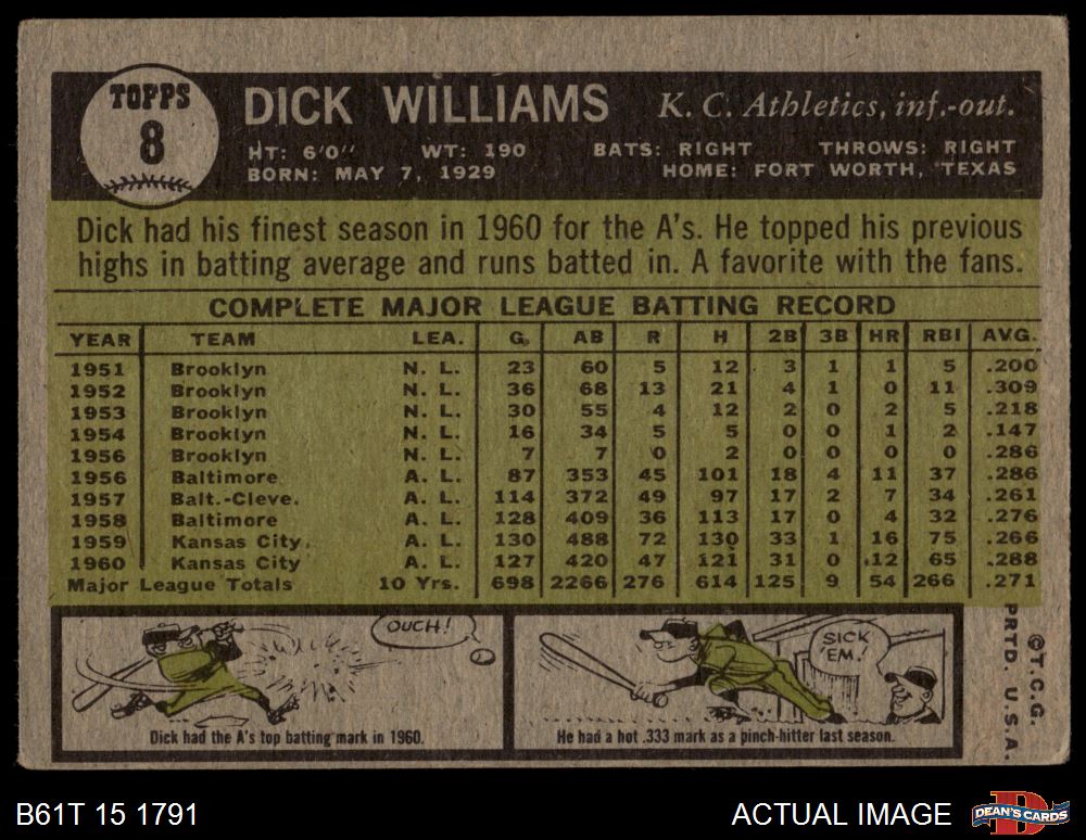 1961 Topps Baseball Cards (10,646 available)1961 Topps Athletics (722 available)