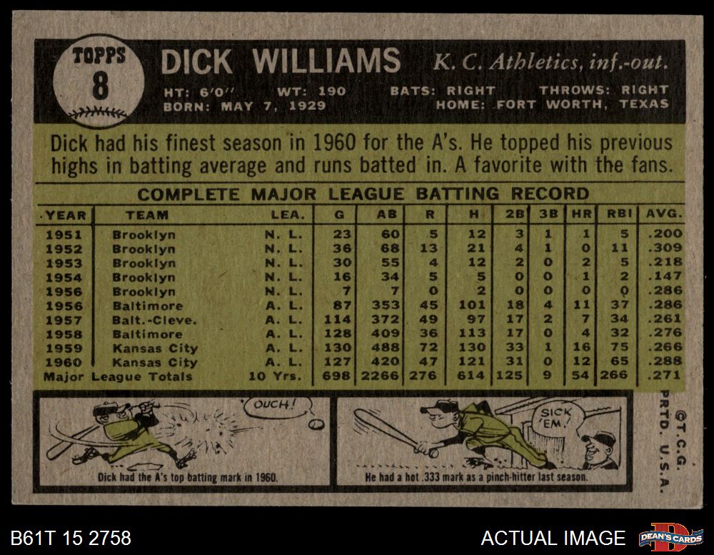 1961 Topps #8 Dick Williams 4 - VG/EX