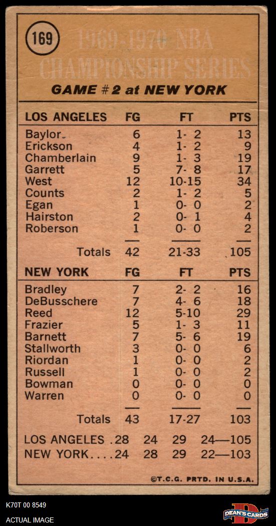 1970 Topps #169 - Dick Garrett 1969-70 NBA Championship - Game 2 1.5 - FAIR