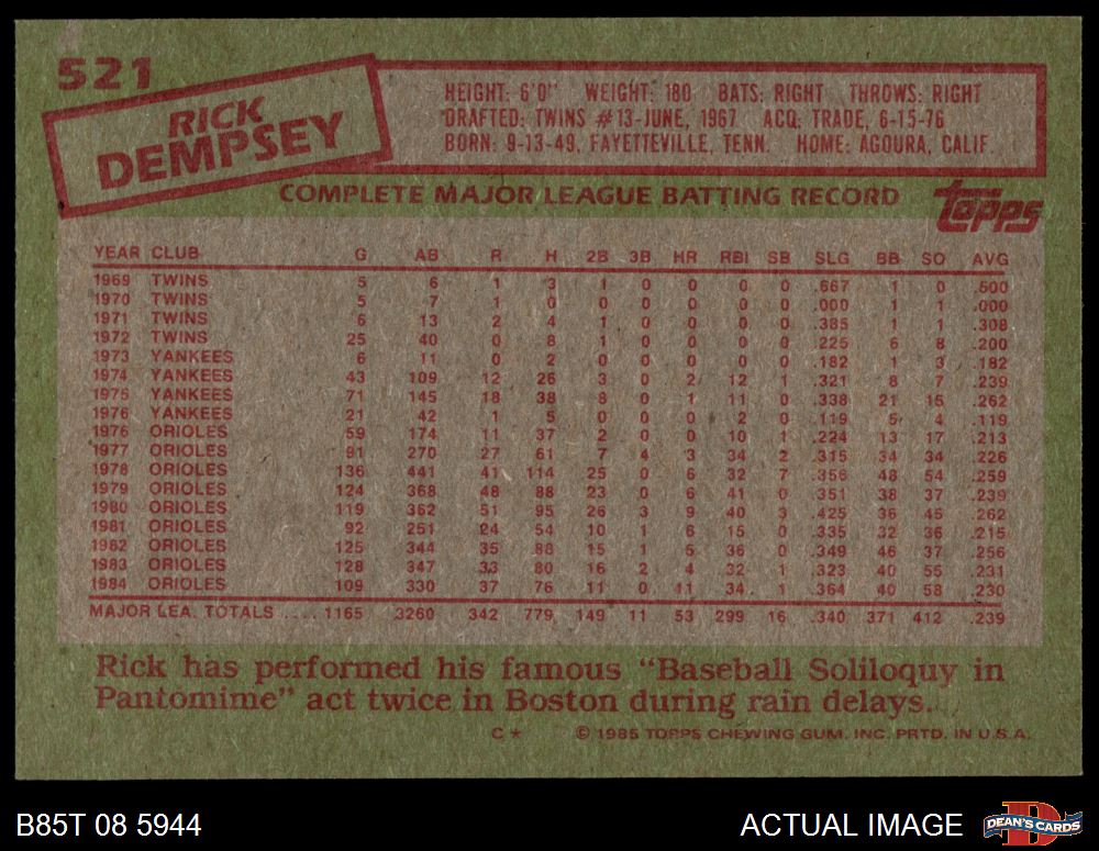 1985 Topps #521 Rick Dempsey