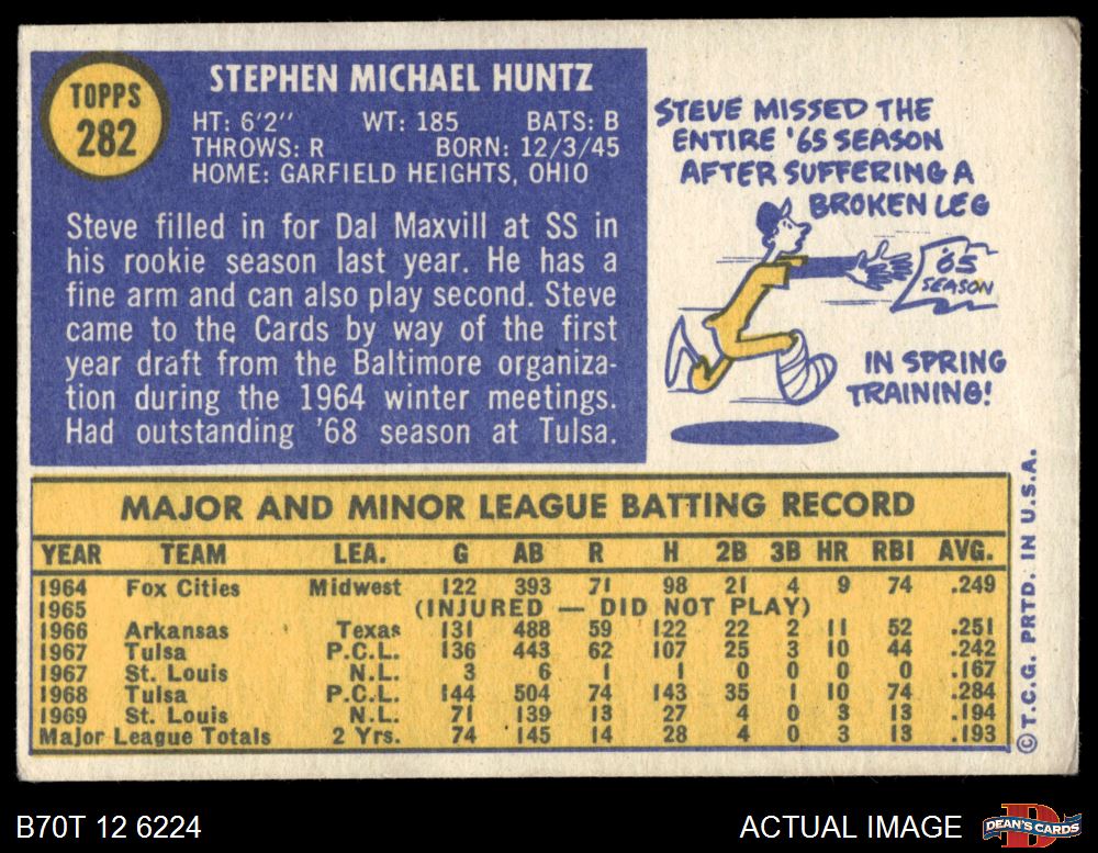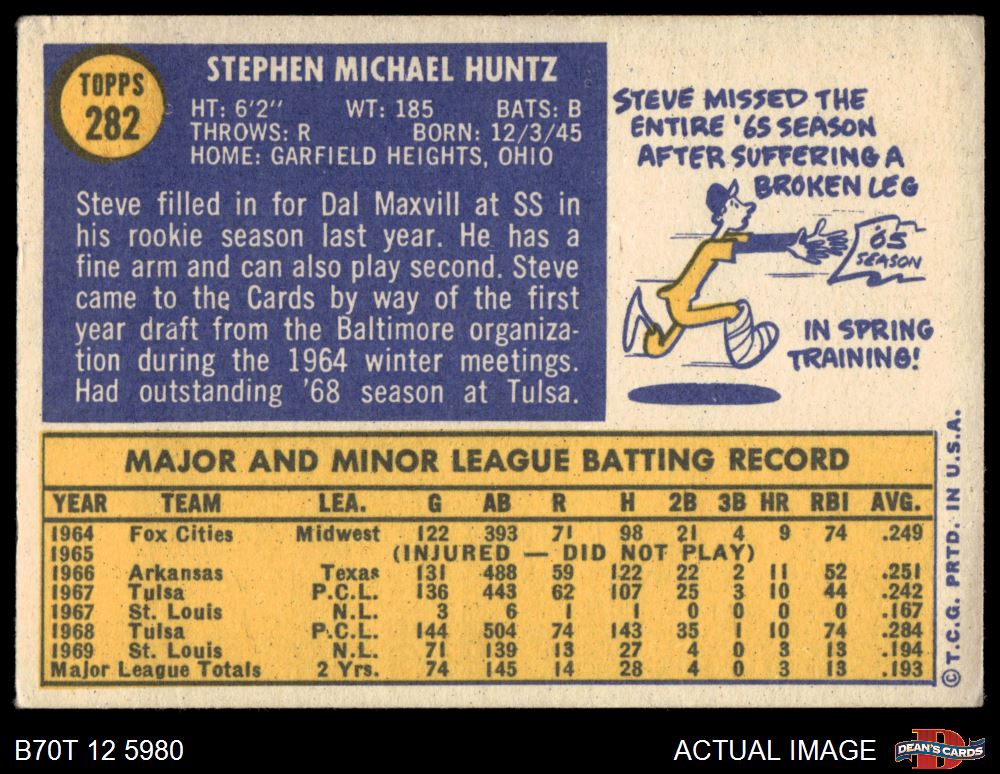 1970 Topps #282 Steve Huntz 4 - VG/EX