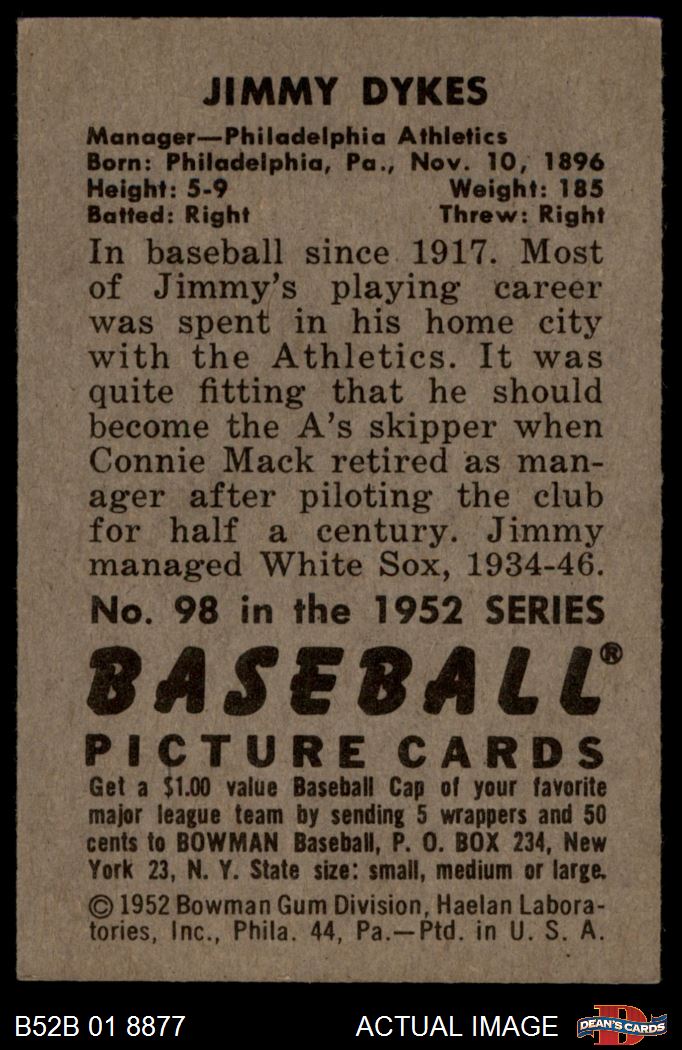 1952 Bowman #98 Jimmy Dykes 3.5 - VG+