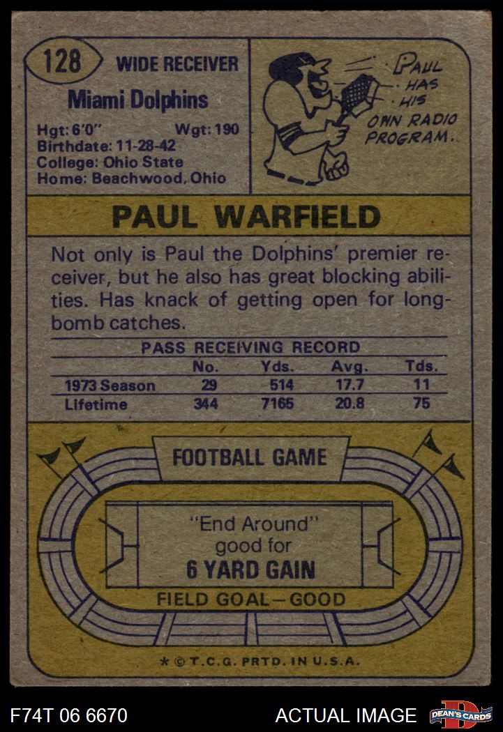 1974 Topps #128 - Paul Warfield All-Pro 2 - GOOD
