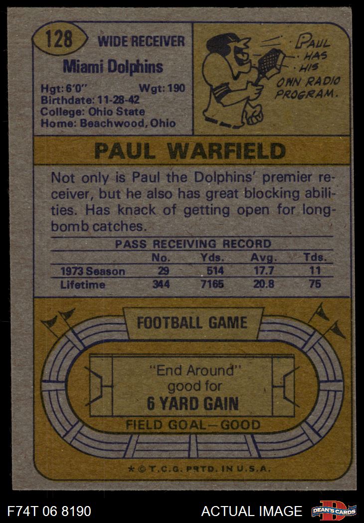 1974 Topps #128 - Paul Warfield All-Pro 4 - VG/EX