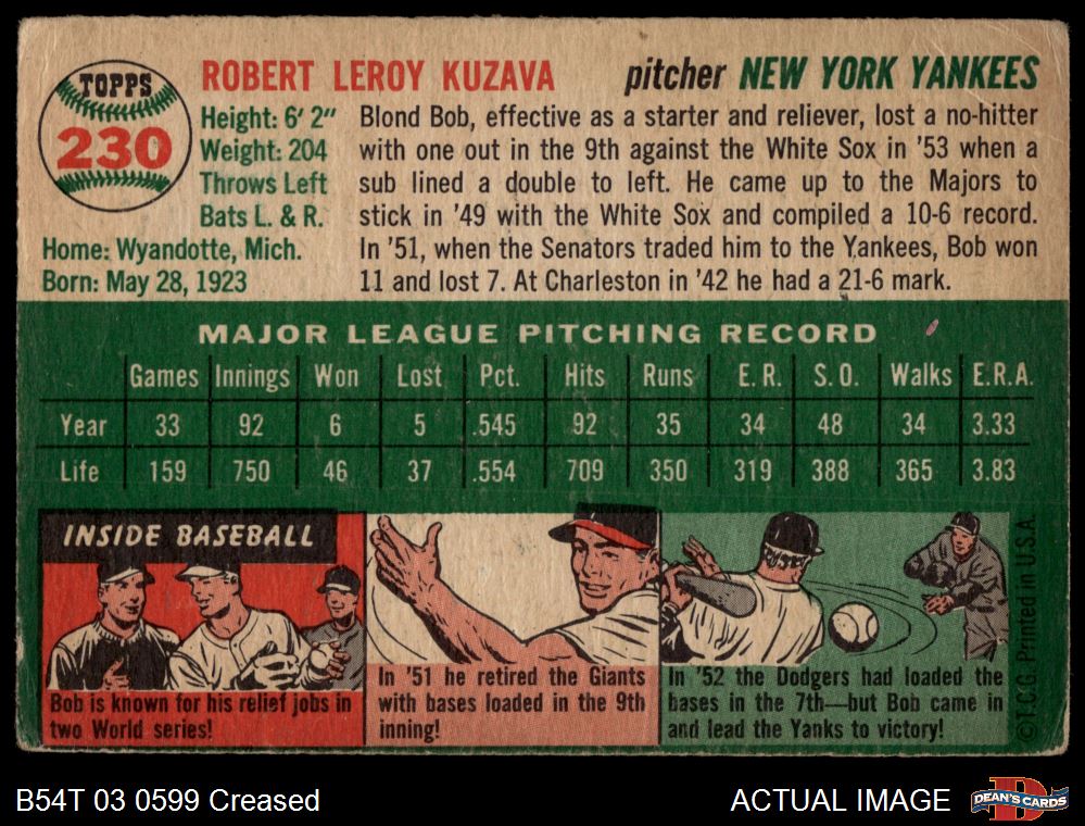 1954 Topps #230 Bob Kuzava 1.5 - FAIR