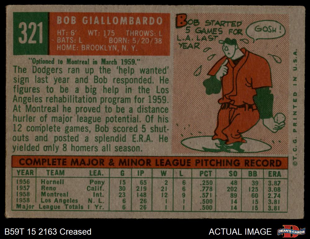 1959 Topps #321 OPT Bob Giallombardo Front Thumbnail