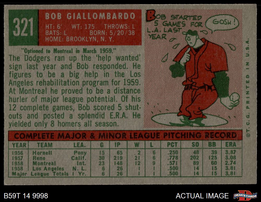 1959 Topps #321 OPT Bob Giallombardo 6 - EX/MT