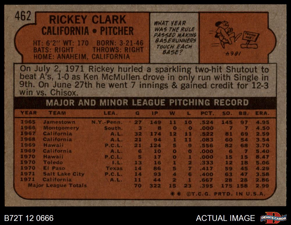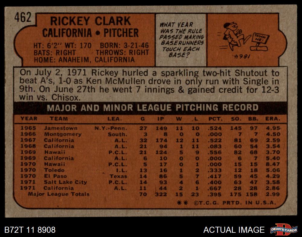 1972 Topps #462 Rickey Clark