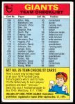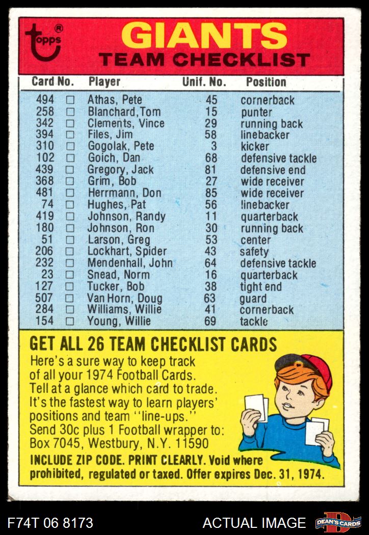 1974 Topps Checklist New York Giants Team 4 - VG/EX