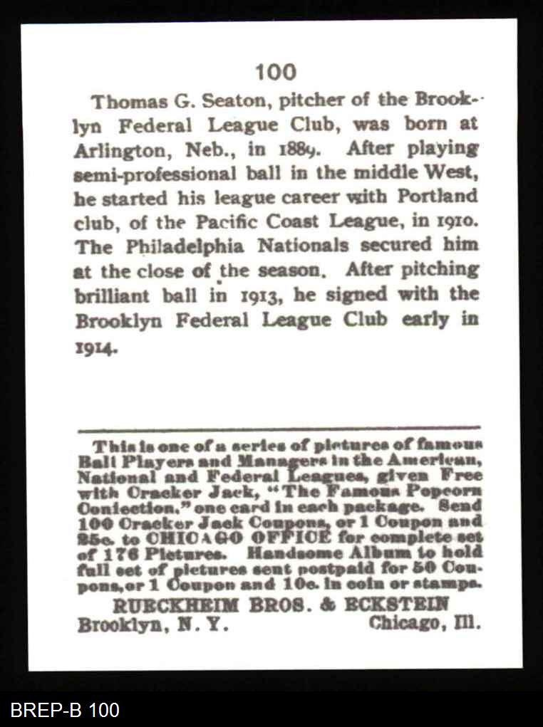 1915 Cracker Jack Reprint #100 Thomas Seaton