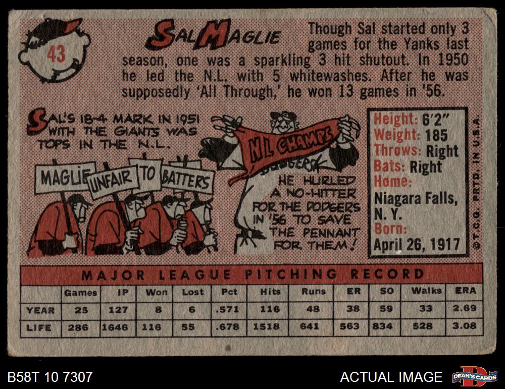 1958 Topps #43 Sal Maglie 1.5 - FAIR
