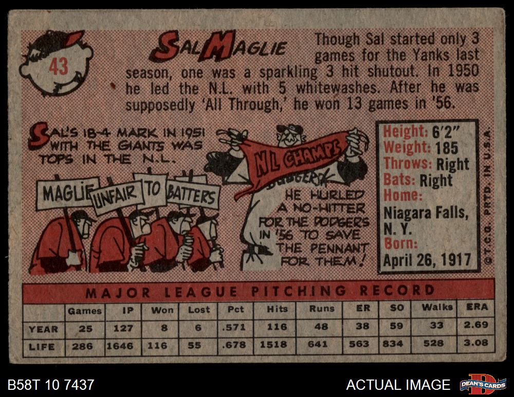 1958 Topps #43 Sal Maglie 2 - GOOD