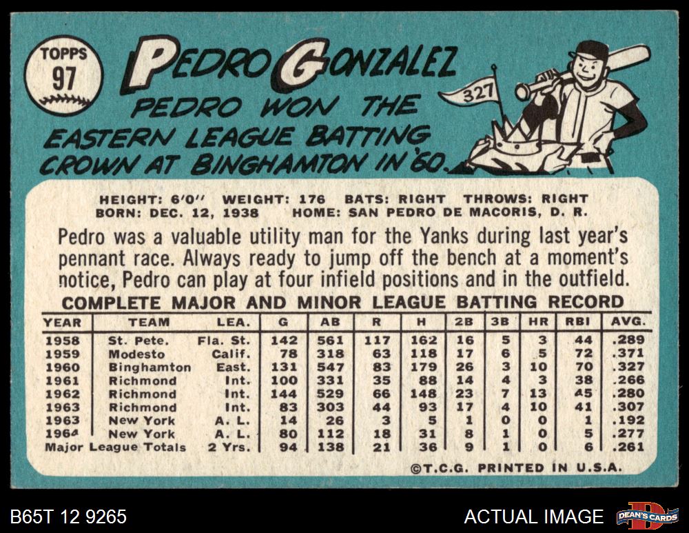 1965 Topps #97 Pedro Gonzalez 4 - VG/EX