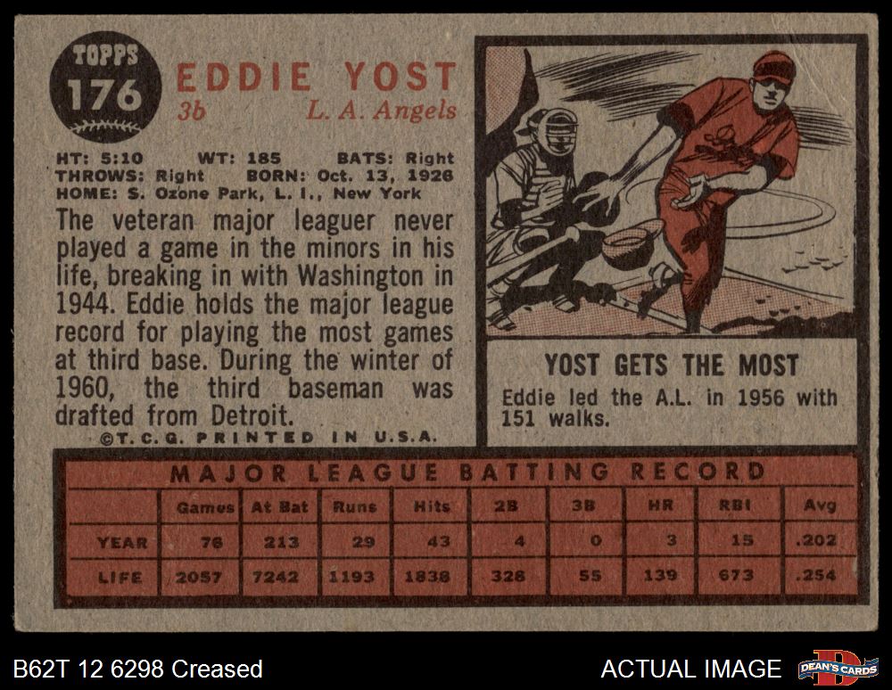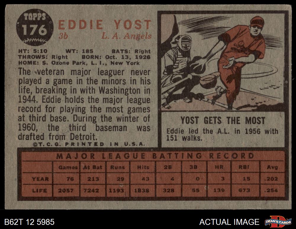 1962 Topps #176 POR Eddie Yost