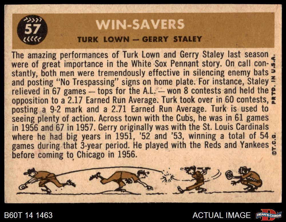 1960 Topps #57 - Turk Lown / Jerry Staley Win-Savers 3 - VG