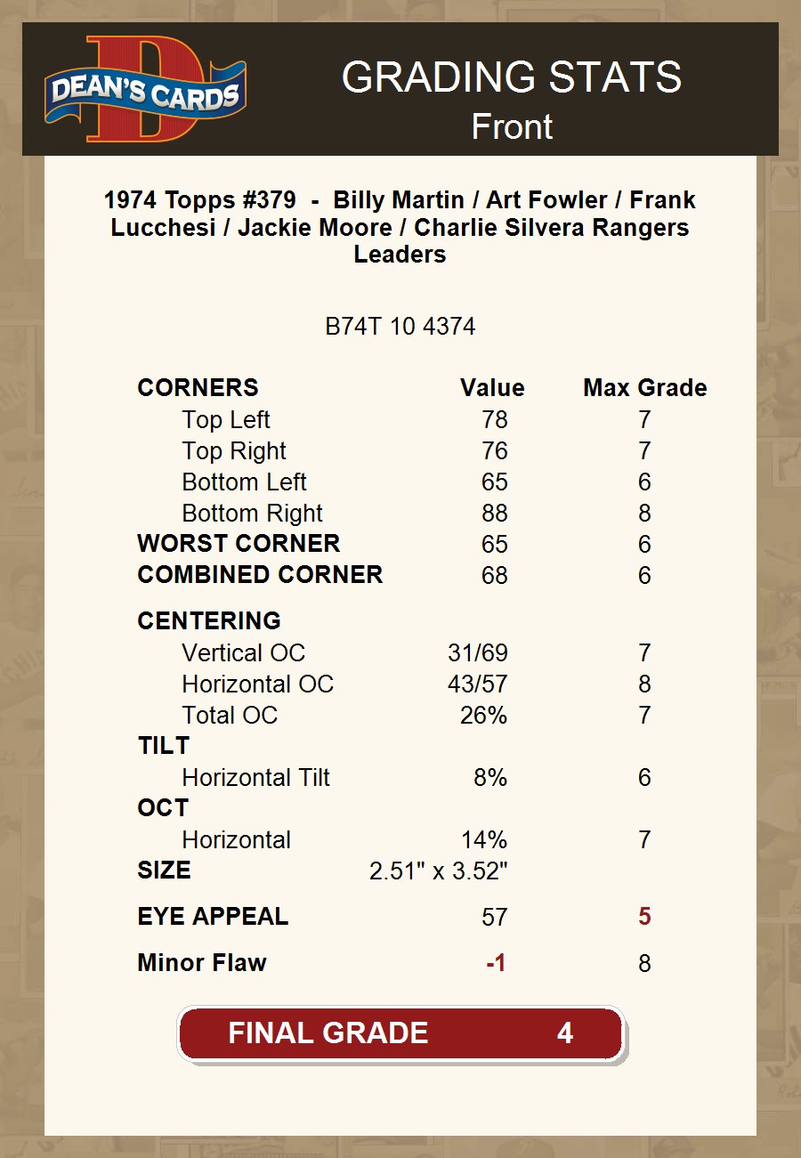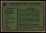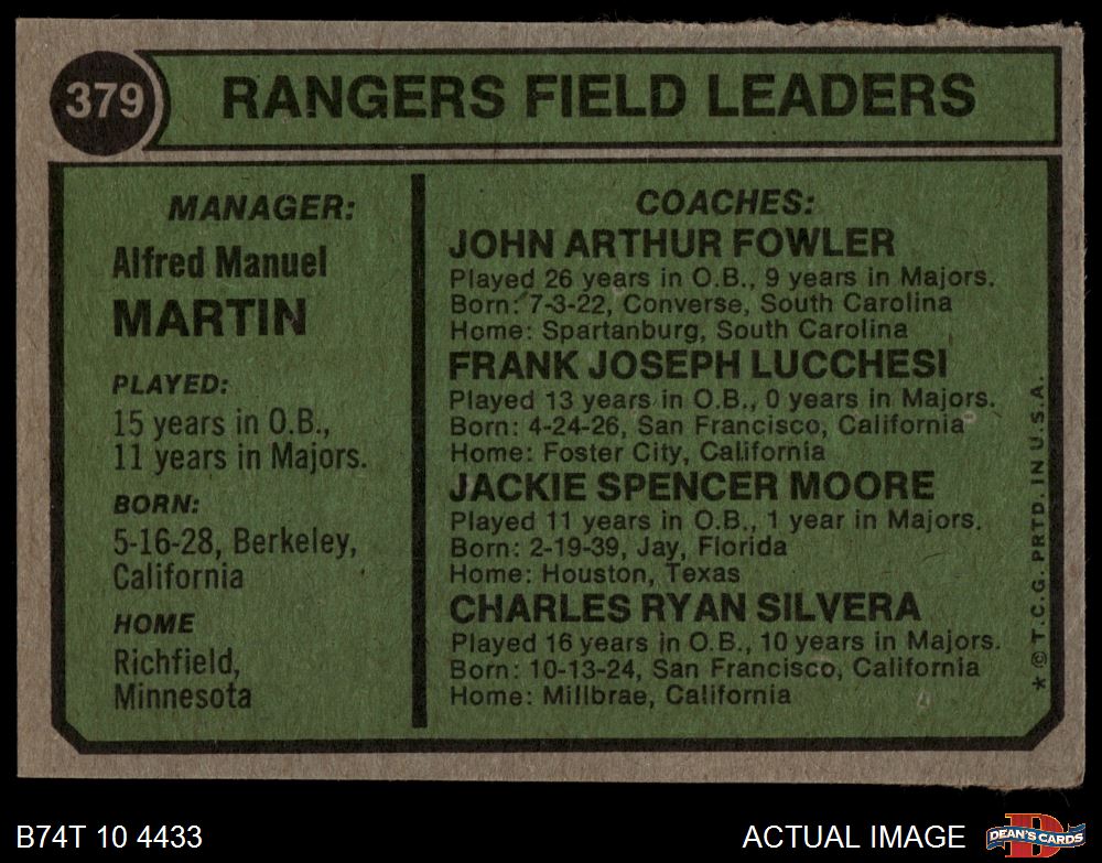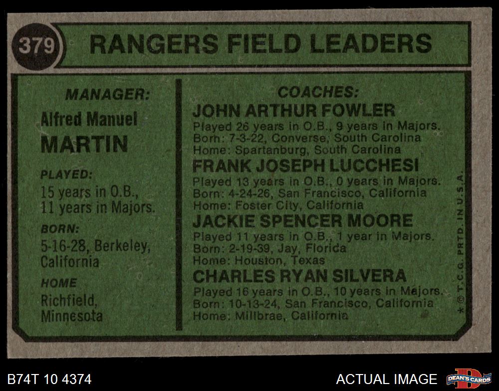 1974 Topps #379 - Billy Martin / Art Fowler / Frank Lucchesi / Jackie Moore / Charlie Silvera Rangers Leaders 4 - VG/EX