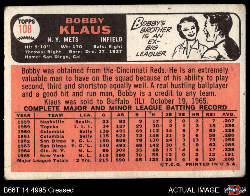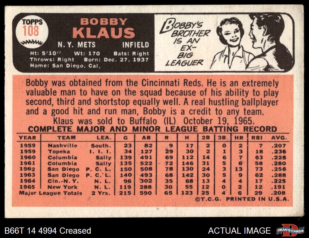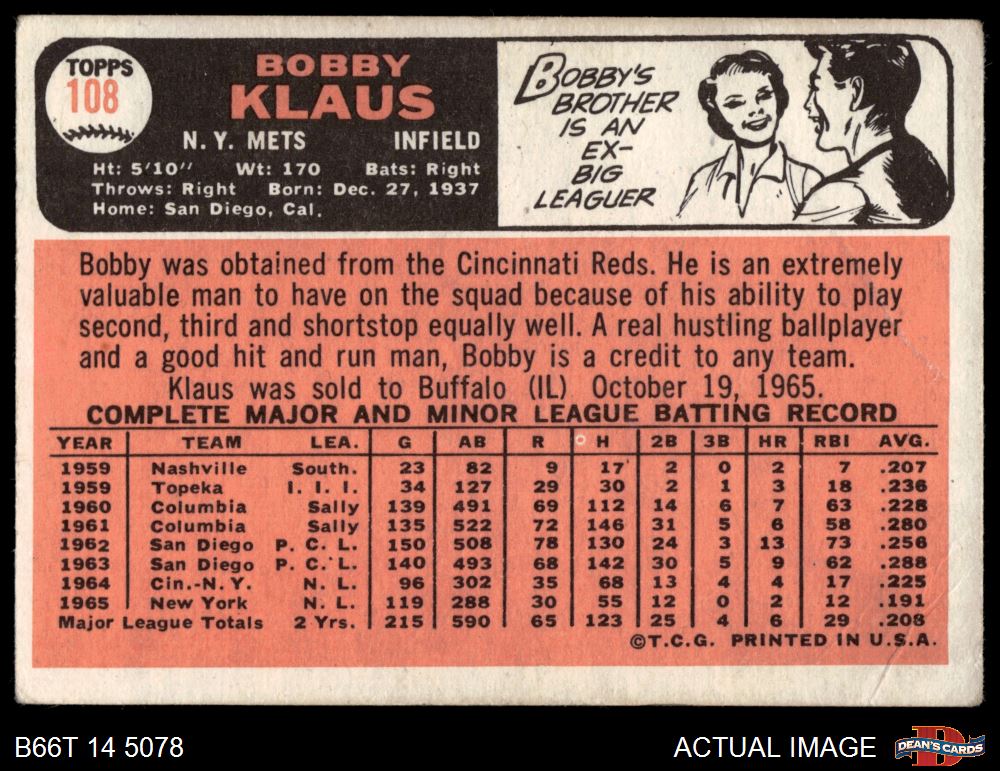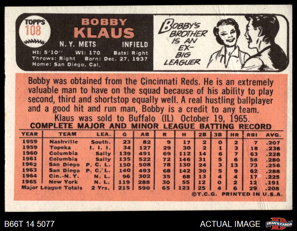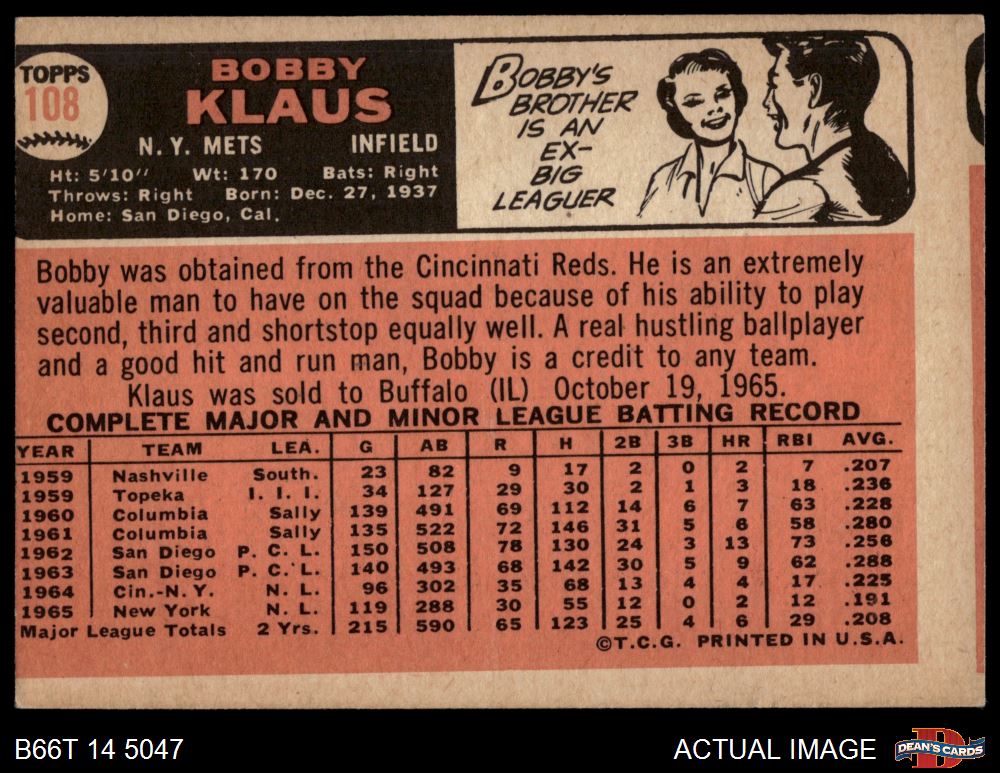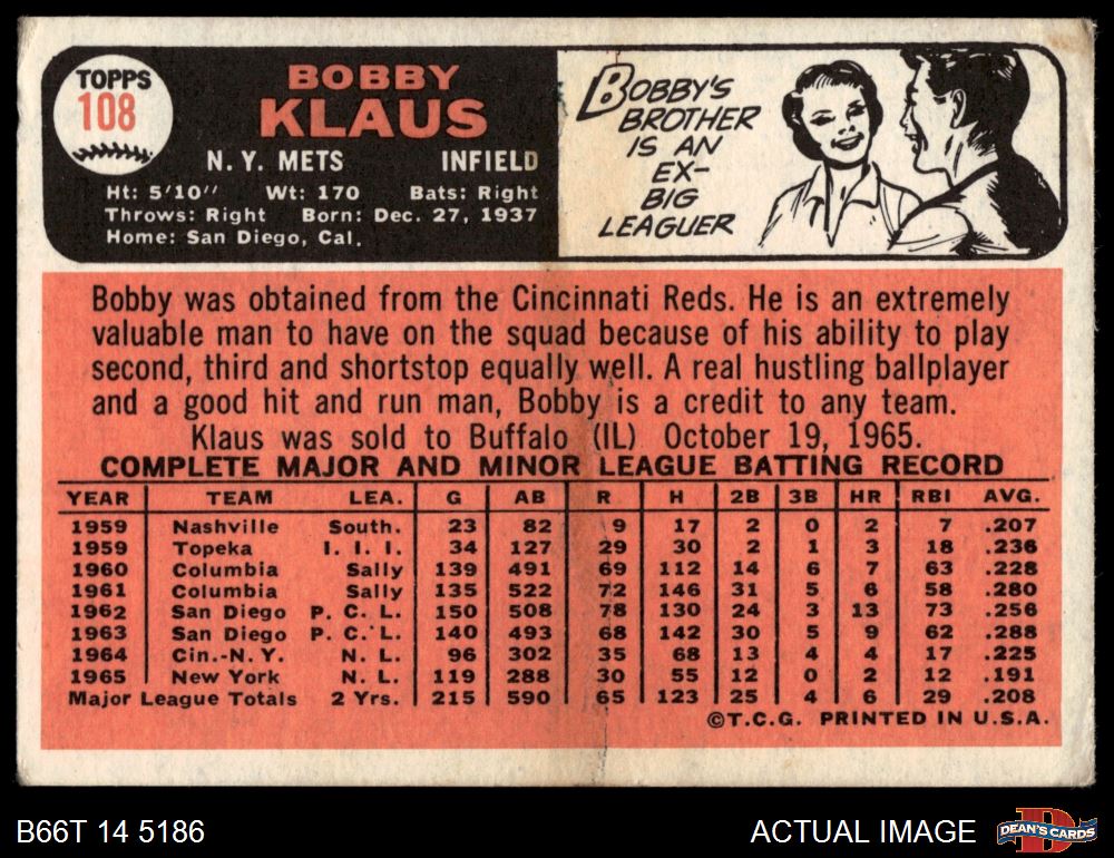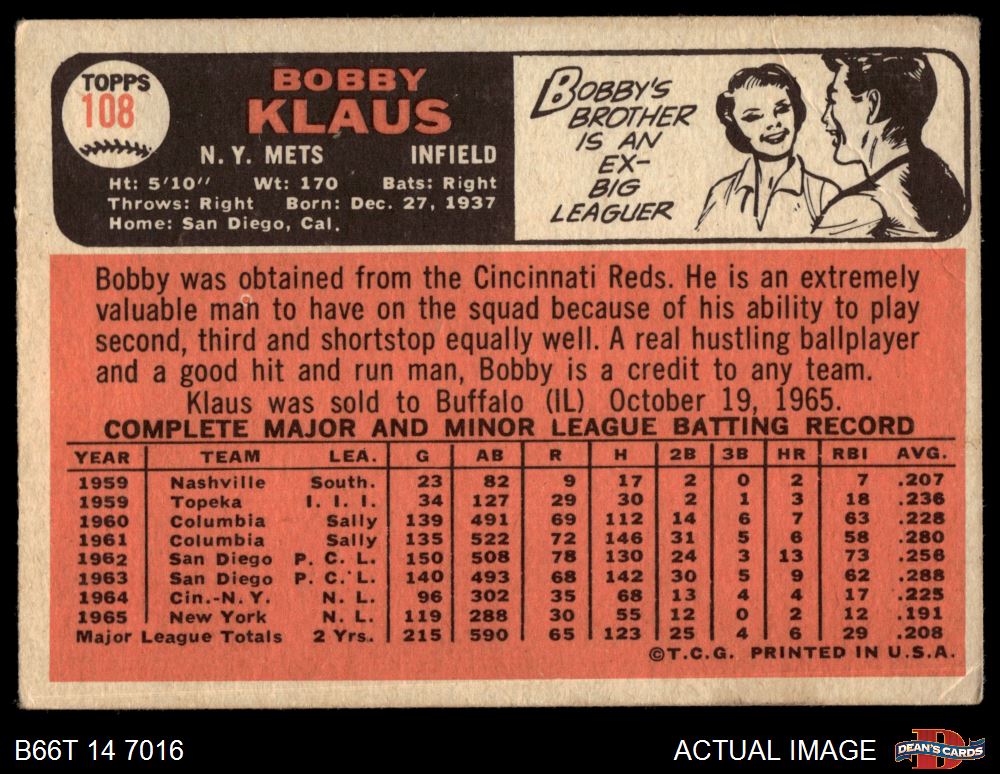 1966 Topps #108 Bobby Klaus
