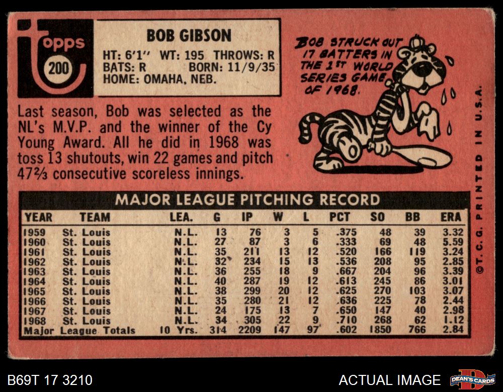1969 Topps #200 Bob Gibson