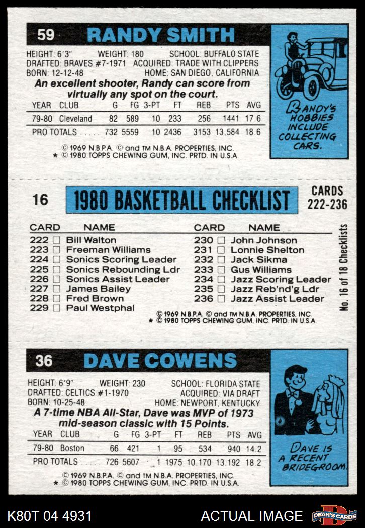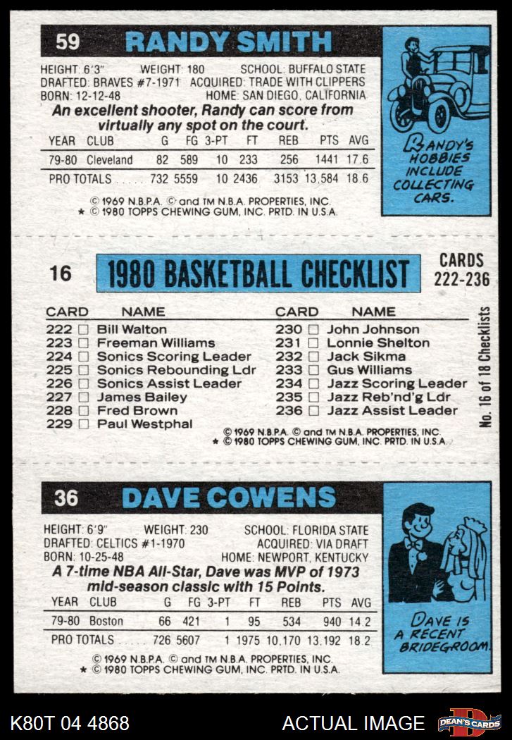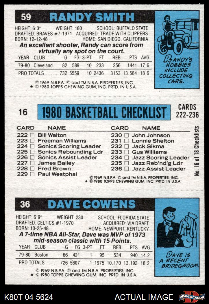 1980 Topps - Dave Cowens / Paul Westphal / Randy Smith 36 / 16 / 59 6 - EX/MT