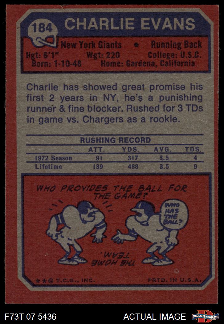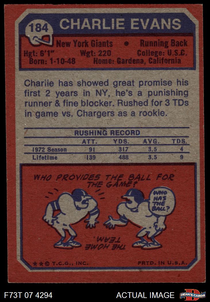1973 Topps #184 Charlie Evans 3 - VG