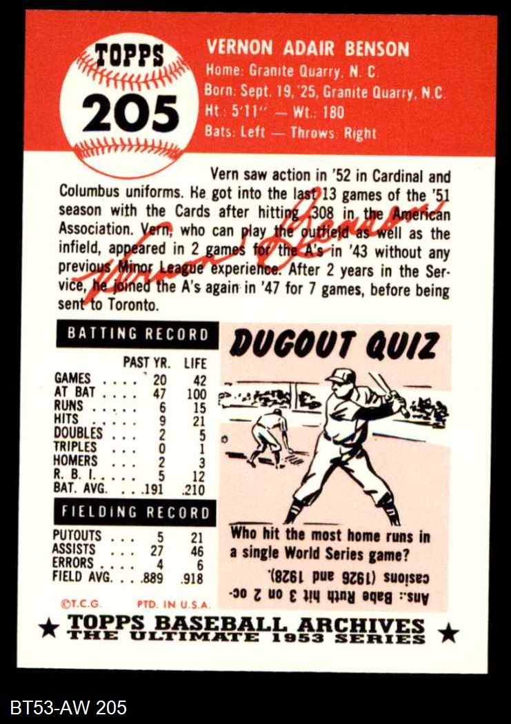 1953 Topps Archives #205 Vern Benson 8 - NM/MT
