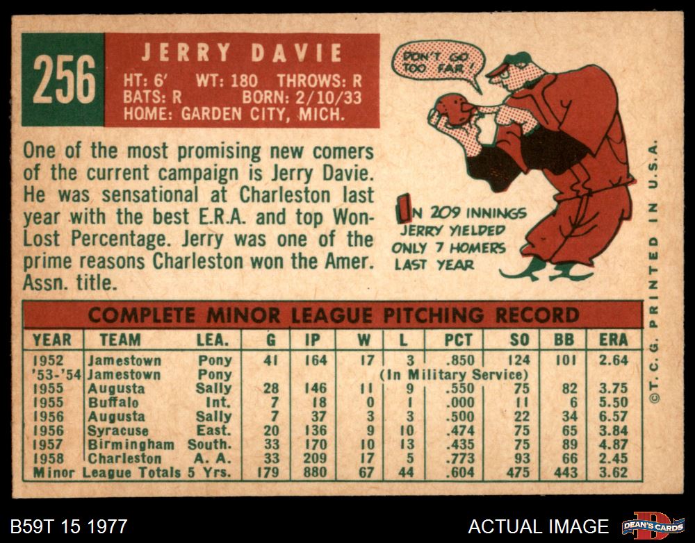 1959 Topps #256 Jerry Davie 5 - EX