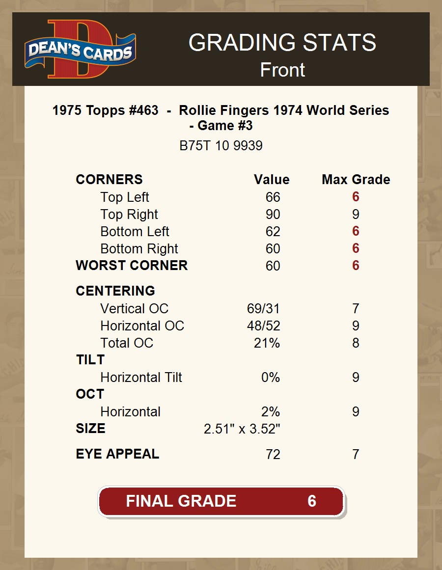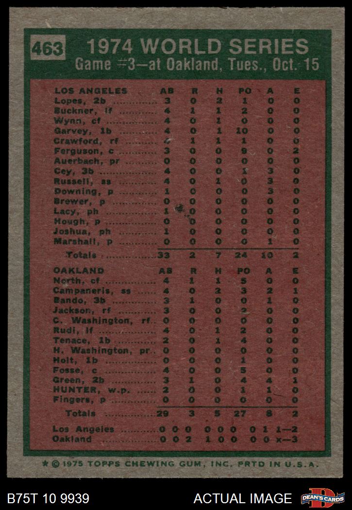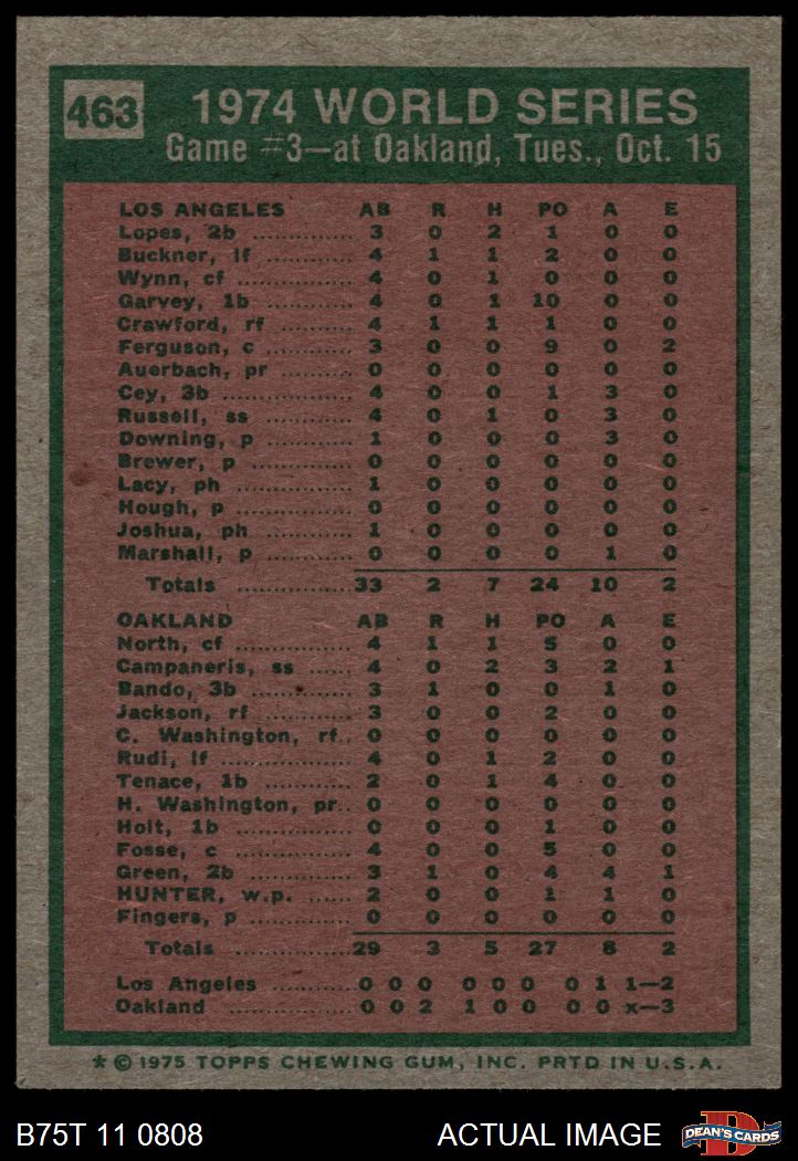 1975 Topps #463 - Rollie Fingers 1974 World Series - Game #3 6 - EX/MT