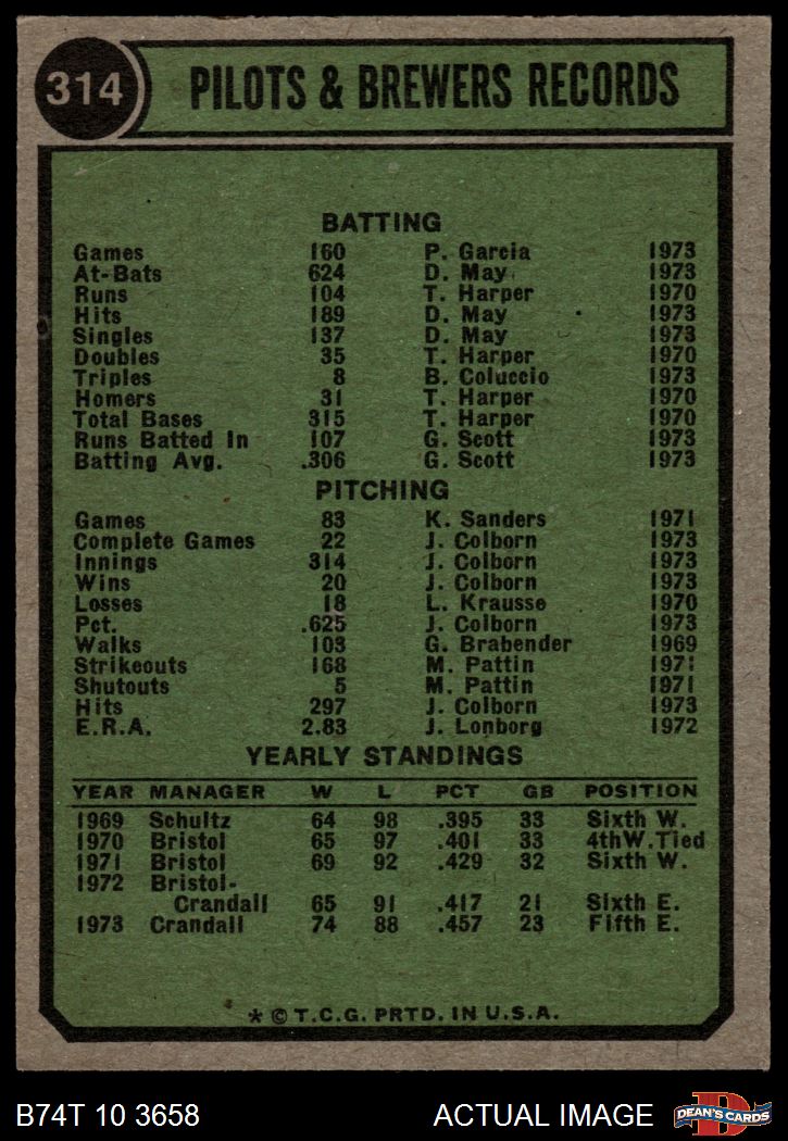 1974 Topps #314 Brewers Team 6.5 - EX/MT+
